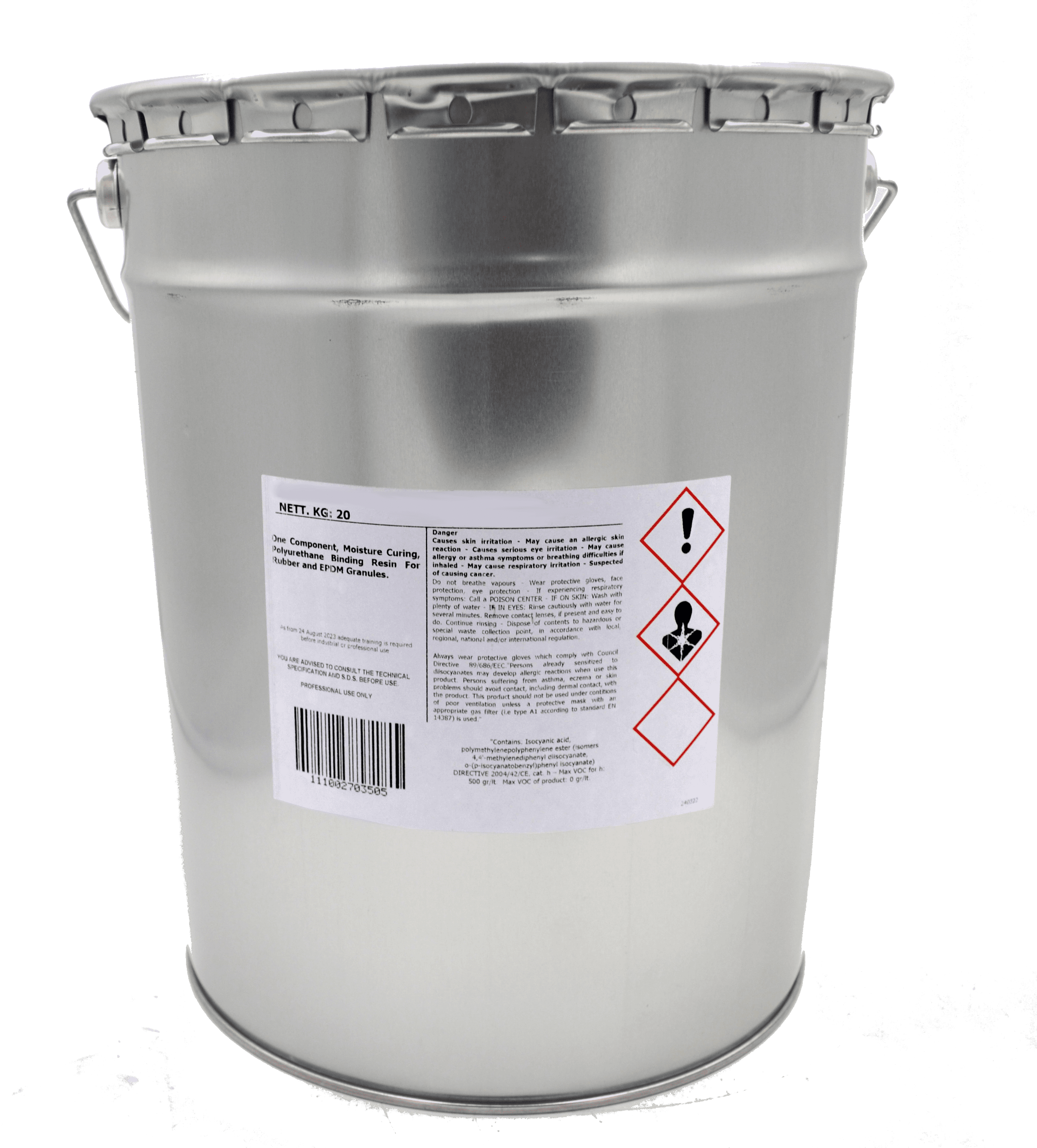 1K Polyurethan Bindemittel für Gummi- und EPDM-Granulate, lösemittelfrei, aliphatisch, UV-stabil